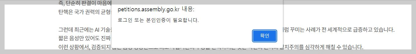 5. 국회전자청원홈페이지 절차에 따라 로그인 또는 본인인증이 필요합니다.